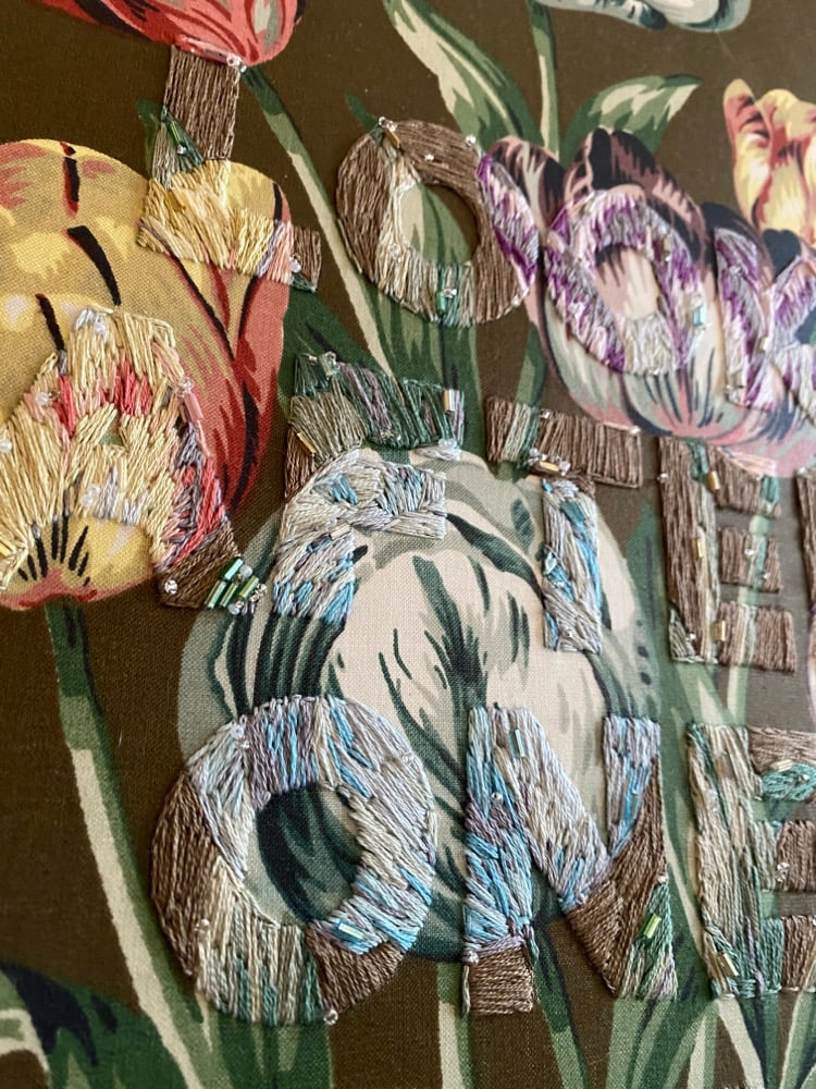 Original hand embroidery artwork currently on display for “WHAT DOES IT MEAN TO BE FREE?”, my solo exhibition at the Harriet Beecher Stowe House in Cincinnati, OH. All purchased artwork must remain on display until the conclusion of the exhibition (June 7).